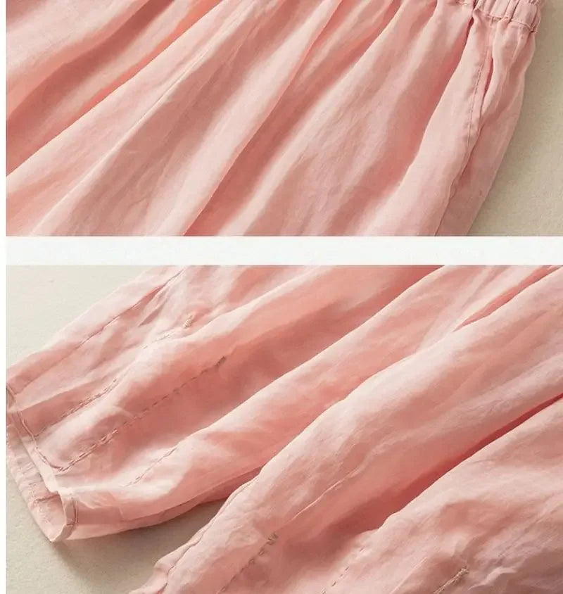 Introducing the Embroidered Drawstring Cropped Relaxed Fit Pants for Women, the perfect blend of style and comfort. Crafted from breathable linen with a relaxed fit and elegant embroidery, these pants are designed to enhance your wardrobe while providing optimal comfort for any casual occasion.