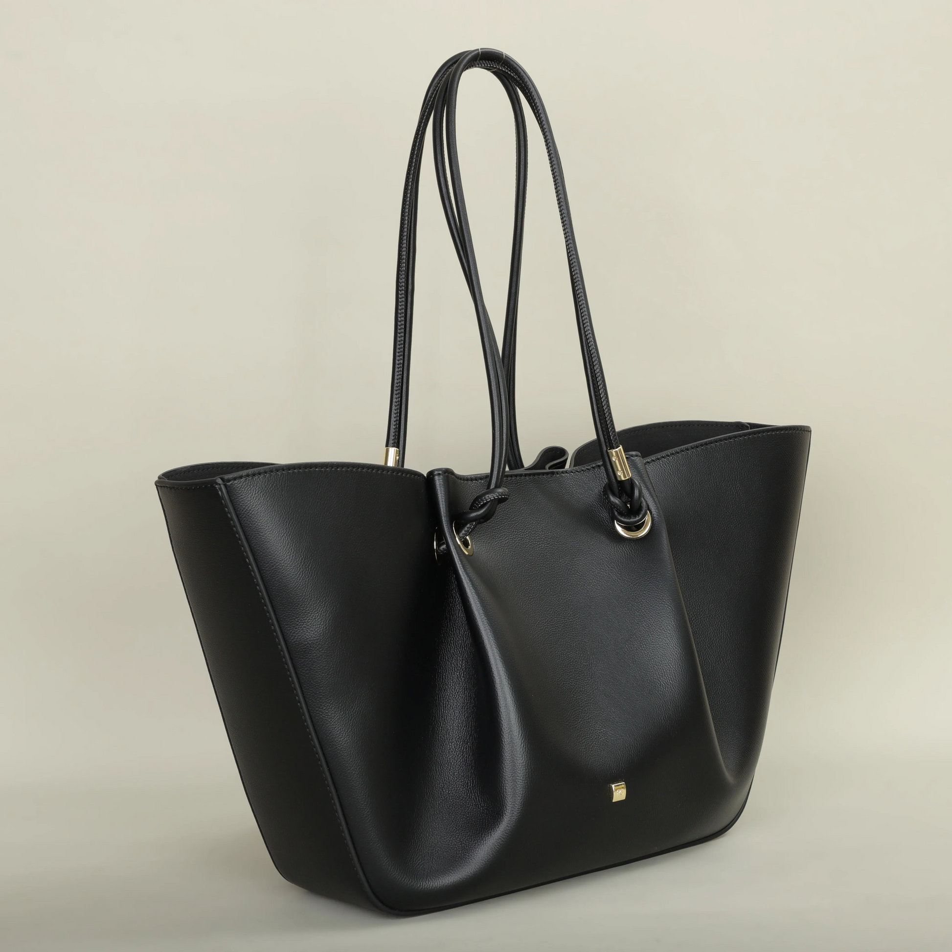 Designed for the discerning individual, this structured carryall bag offers a refined silhouette that complements any ensemble. Crafted from quality leather, its elegant form is enhanced by distinctive knotted handles and gleaming gold-tone hardware. Perfect for everyday use, it provides both sophisticated style and practical functionality.