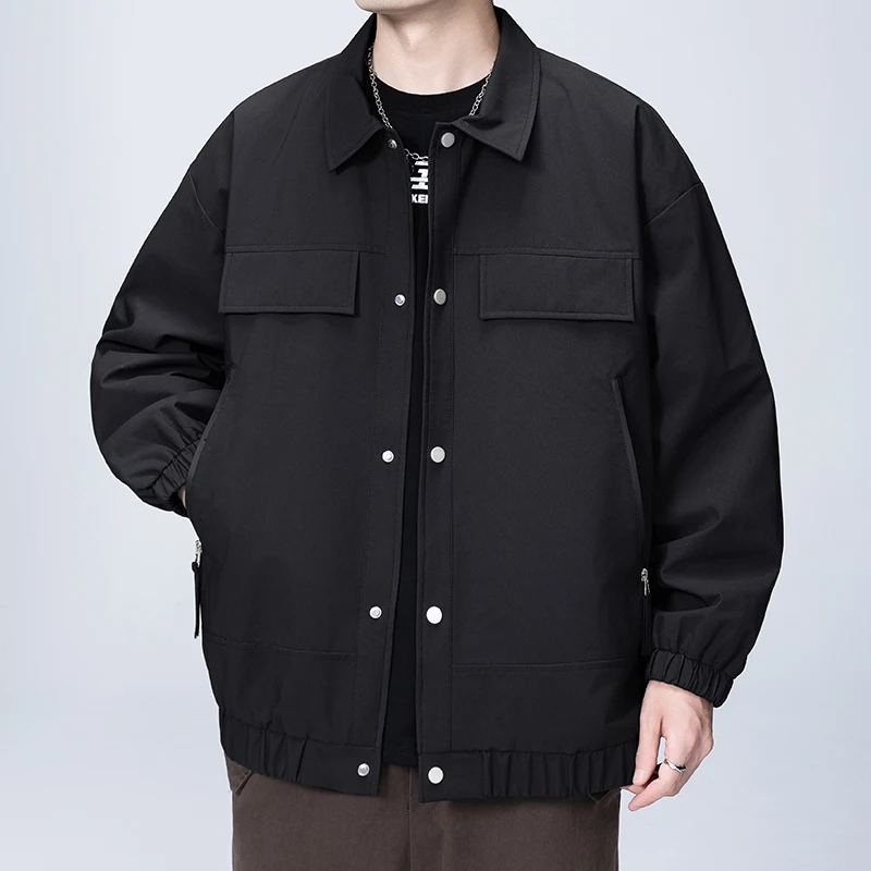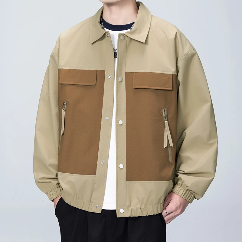 Embrace a laid-back yet refined aesthetic with this relaxed fit bomber jacket, perfect for casual outings. It features a classic collared neckline and a distinctive color block pattern, adding a modern touch to your ensemble. Designed for ease, this hip-length jacket includes a convenient snap button closure and practical flap pockets, blending style with functionality.