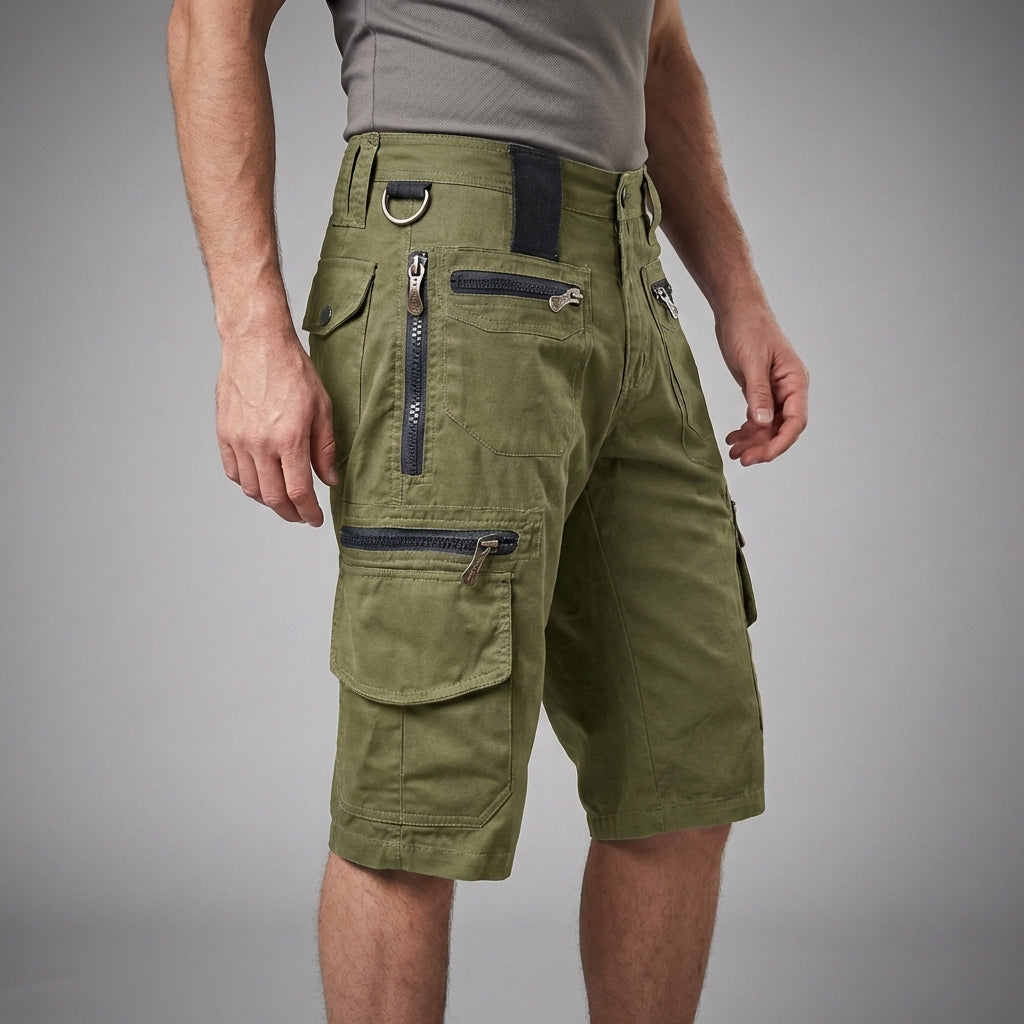 - Style Type: Cargo Shorts, Cargo Pockets, Zippered Pockets, D-Ring Detail, Velcro Detail